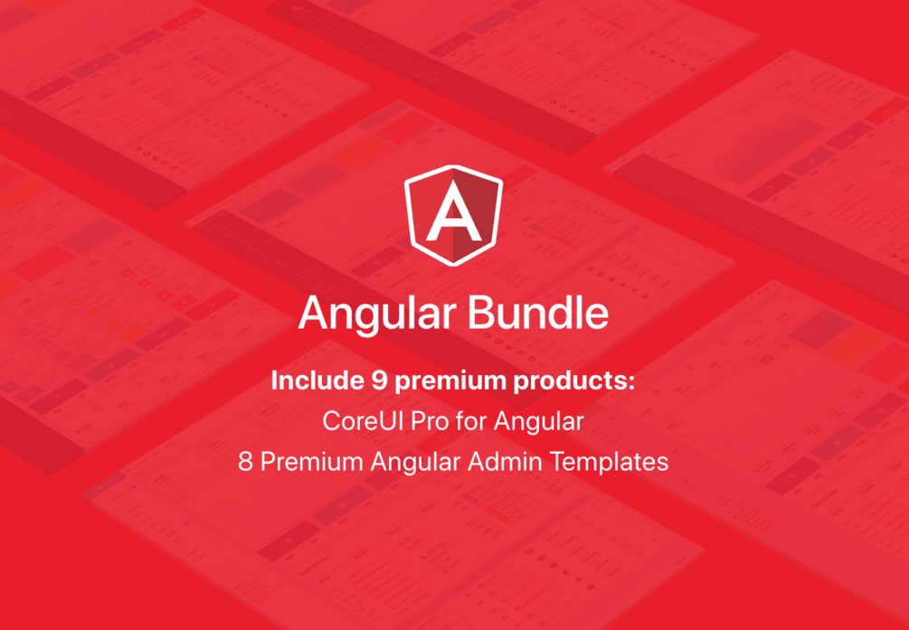 Angular Bundle include 9 premium products: CoreUI Pro for Angular and 32 Premium Angular Admin Templates.